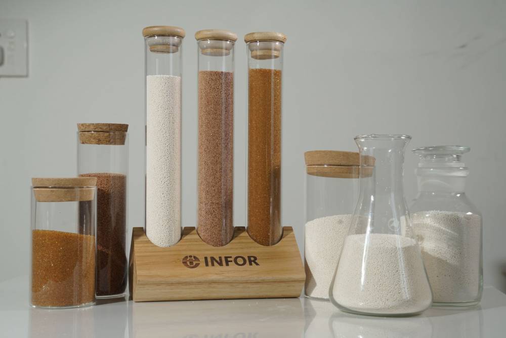 凝胶型树脂的一个应用实例是INDION®FR10,它专门用于去除水溶液中的氟离子。这款树脂能够在盐环境中运行,不受其他阴离子如硫酸根的影响,处理精度高,能够将氟化物含量降至1ppm以下。